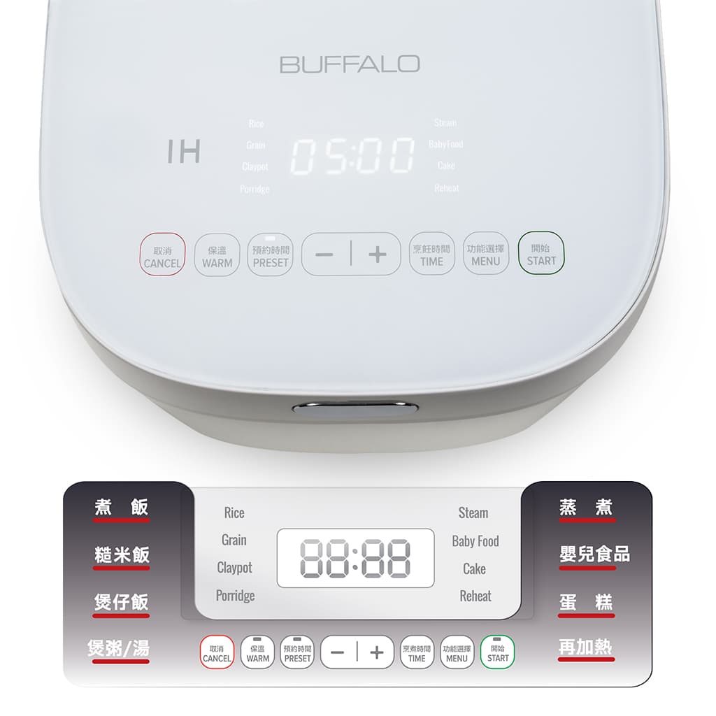 The patented Buffalo Clad inner pot is made of high-quality Japanese cladding materials. It has no chemical coating, great heat retention, and withstands the toughest acids such as alkali from wear and tear. Program 24 hours ahead and time your feasts perfectly. Feels like a Michelin-starred chef with Buffalo IH Smart Cooker's smart panel and Micom temperature control.