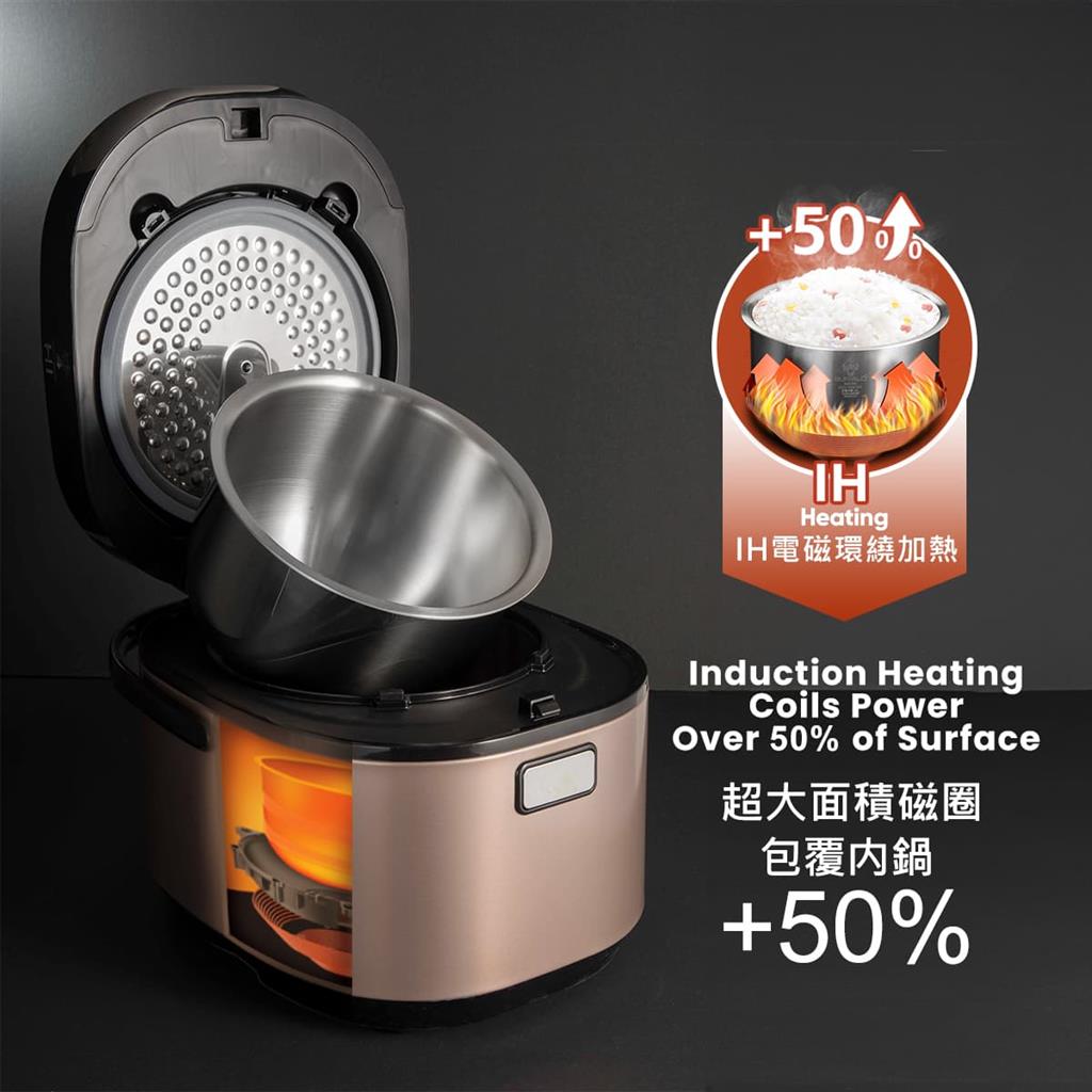 Buffalo IH Smart Cooker uses Japanese cutting-edge induction heating technology which covers over 50% area of the Buffalo's top conduction steel. The cooking is powerful with a press of the button: Ingredients are tossed and heated evenly from all angles while nutrients get locked in and the freshest flavor released.