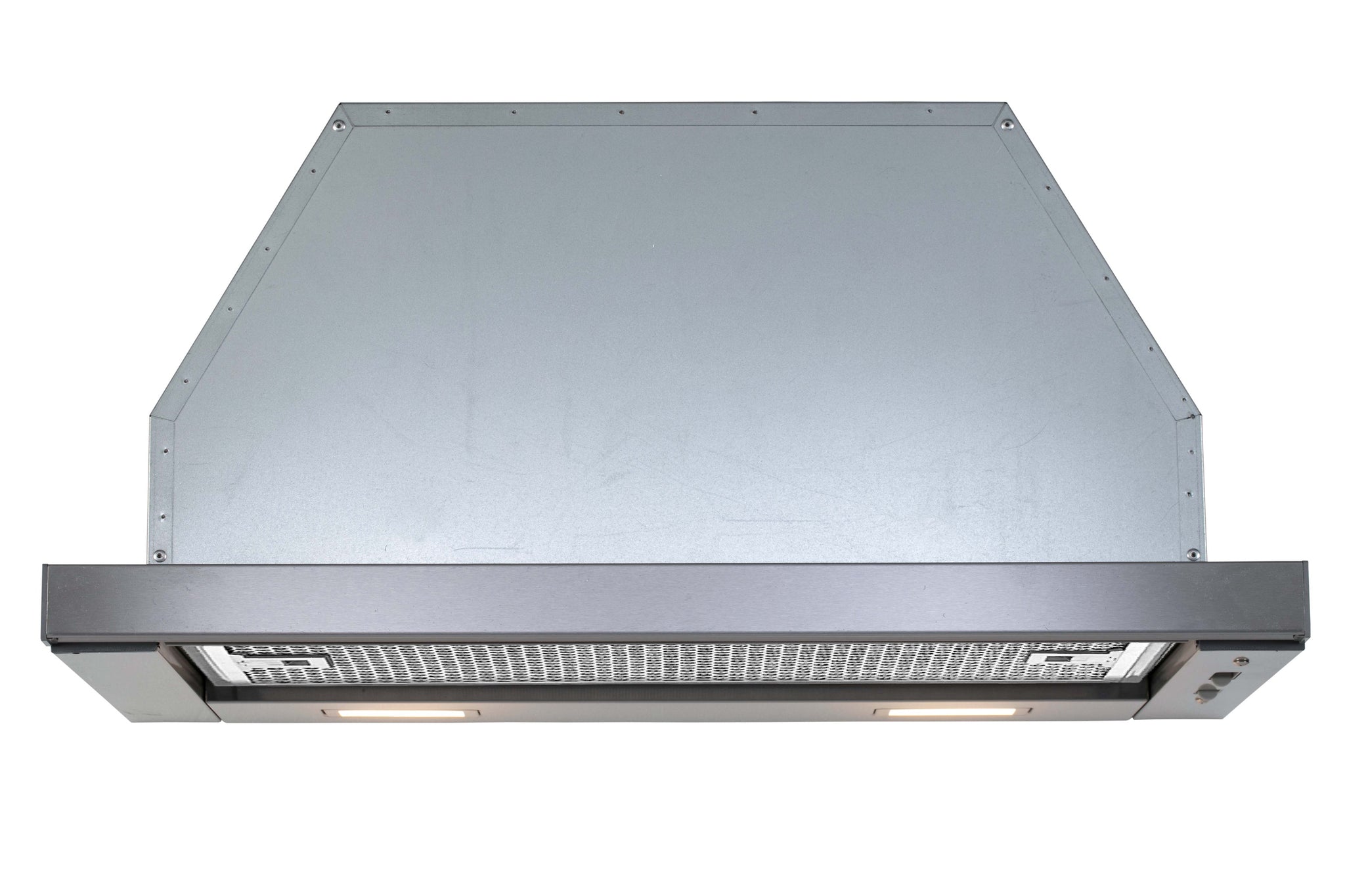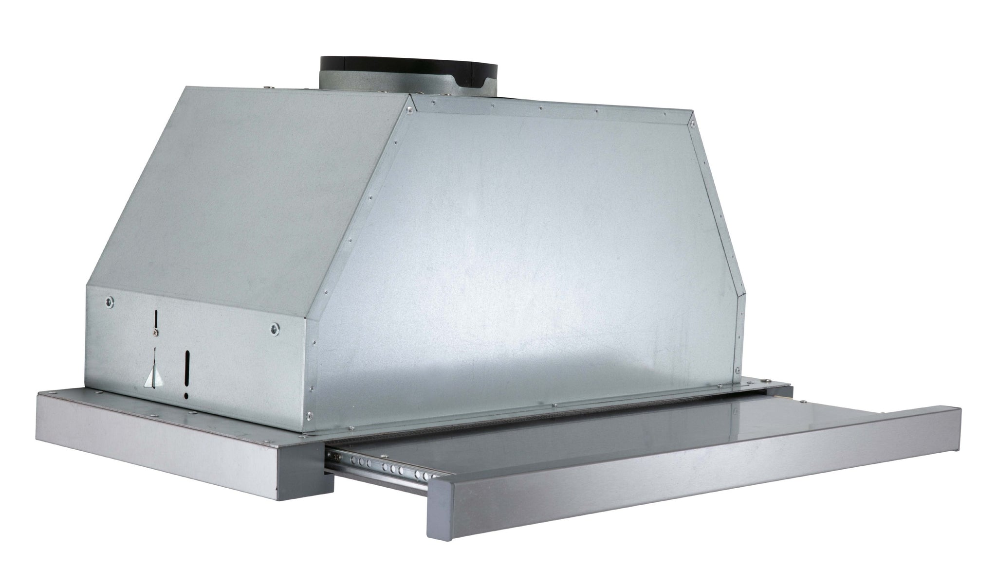 European design slide-out hood fits seamlessly and brings a streamlined look to your kitchen. It mounts into a cabinet above the stove top, spacing saving and its sleek stainless steel pull-out visor slides easily into place when in use, tucks away when not in use. Featuring strong power of 500 CFM motor and 3 speed slide control, 2 bright LED lights, and convenient on / off with slide motion.