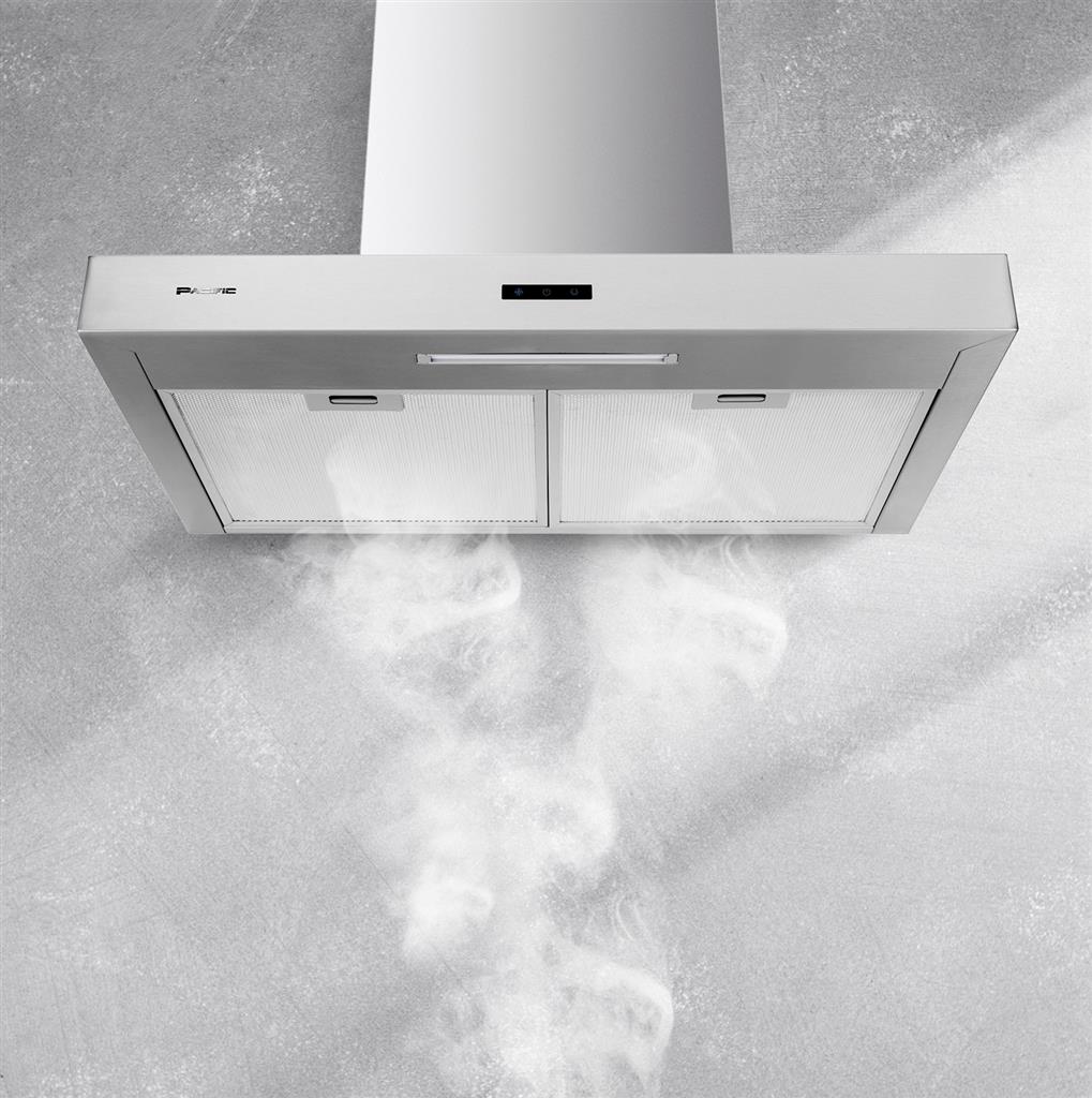 T-Box chimney hood features a low-profile design and a strong 750 CFM blower that can
