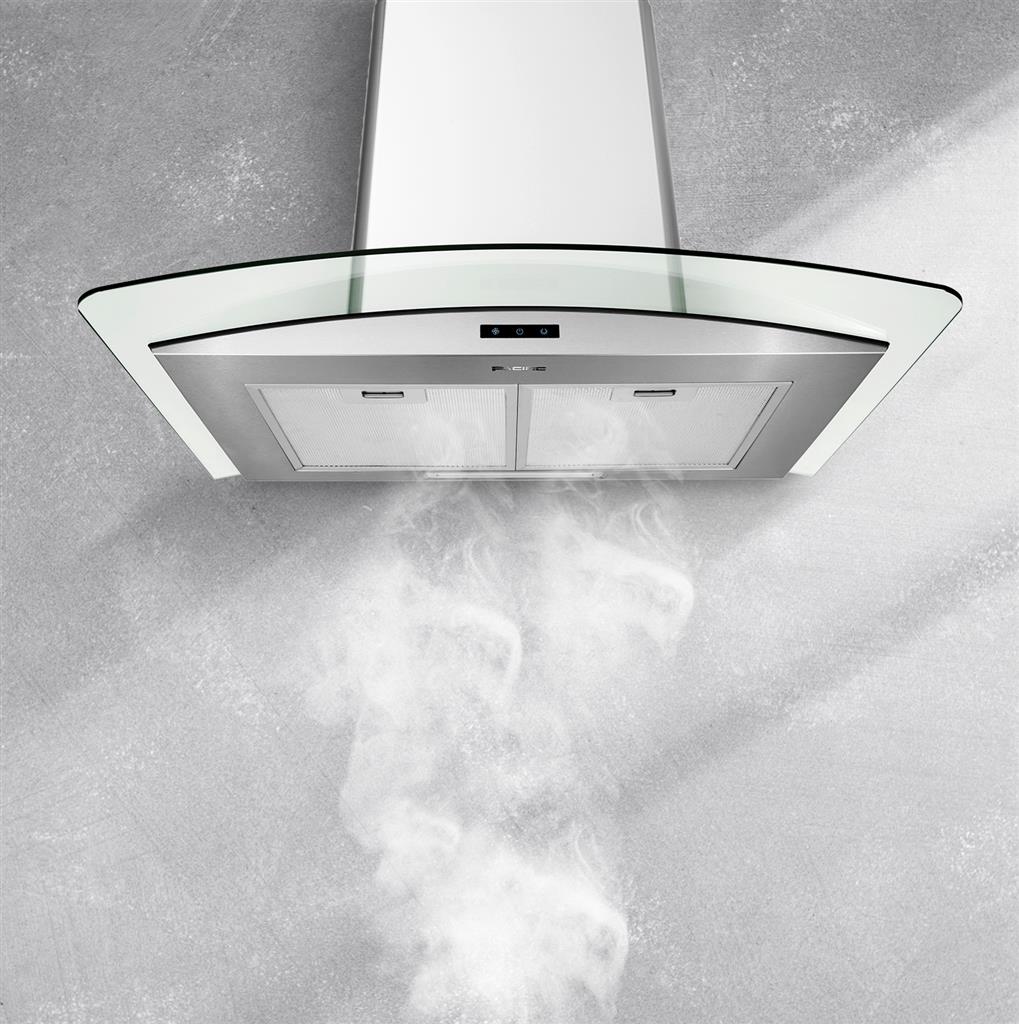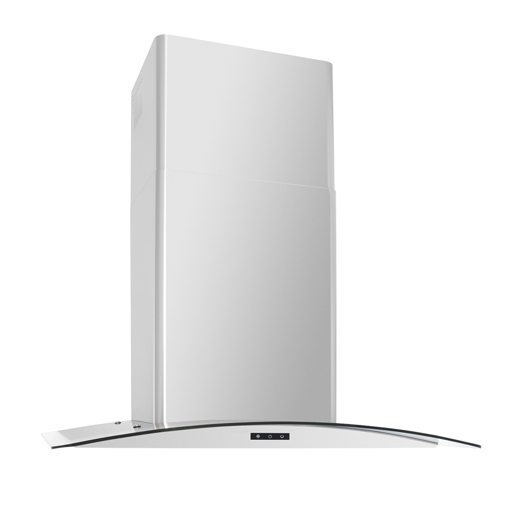 With its curved glass canopy, this cutting-edge hood provides a modern look for your kitchen. Enjoy a 750 CFM blower, dual-level LED lighting, and 3-speed Glass Touch Control, plus convenient dishwasher-safe aluminum filters and a delayed shutoff feature that clears the air and powers down after 5 minutes.